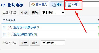 這樣就很容易增加了一個產(chǎn)品分類了。下面教大家如何新增一個產(chǎn)品,見下圖,在產(chǎn)品中心下面隨便點一個產(chǎn)品分類進去,見下圖: